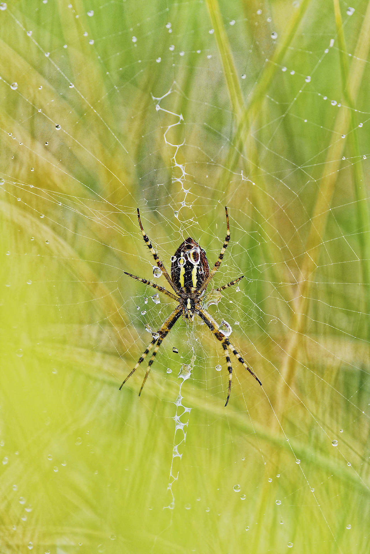 Justement, commençons par l’épeire fasciée, ou argiope frelon, que l’on observe plantée au milieu de sa toile des heures durant, facilitant ainsi son observation.