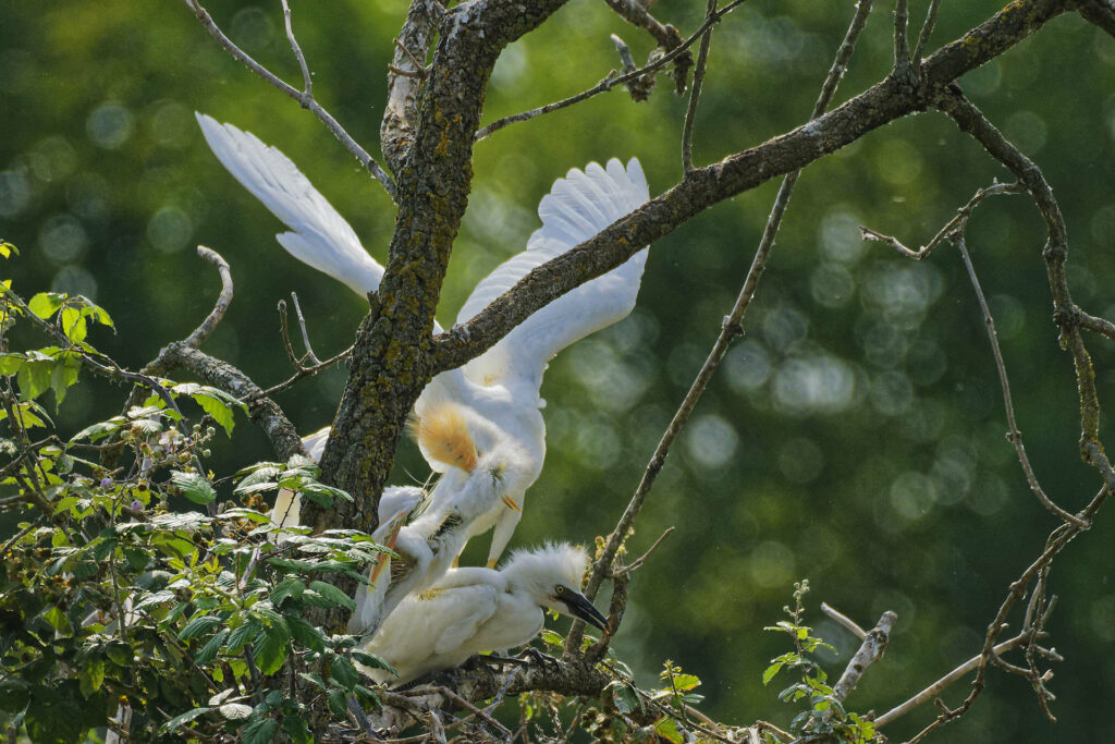 Photo : Héron garde-bœufs, mère célibataire avec enfants