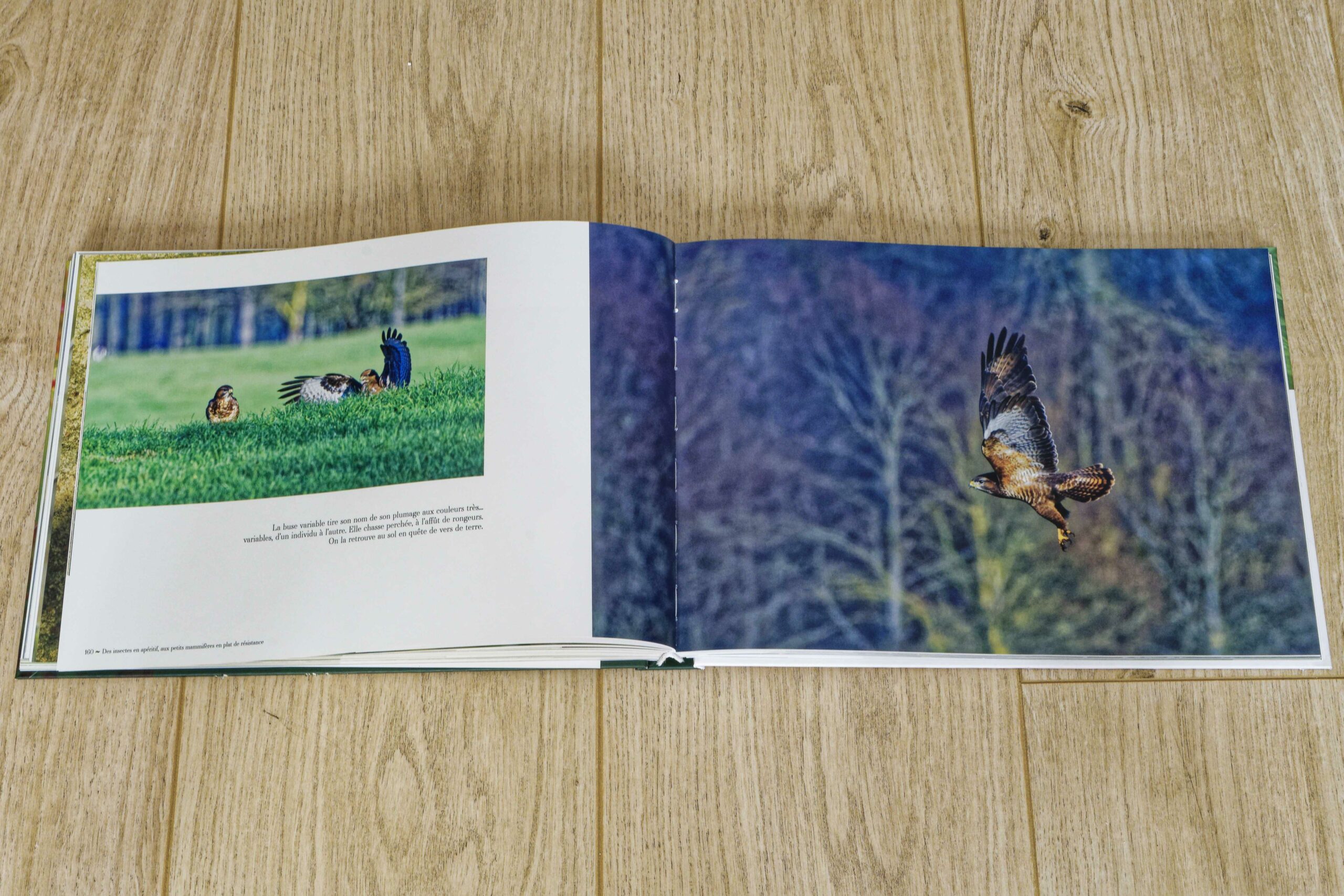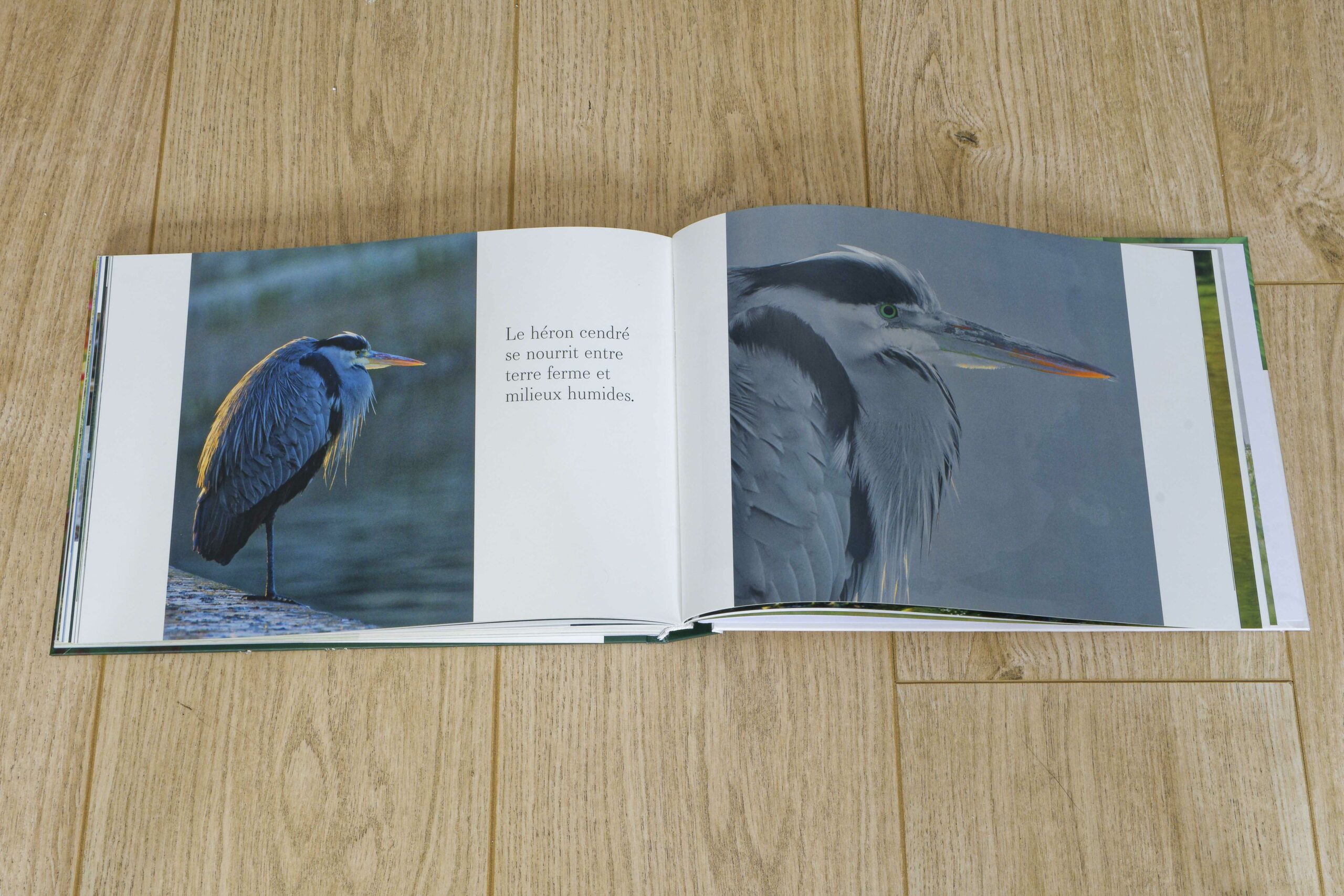 Le livre vous présente des oiseaux terrestres et des oiseaux d’eau dans leur milieu naturel.